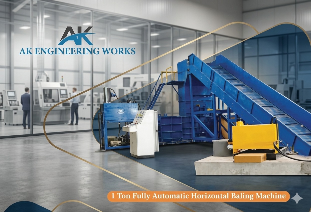 A 1 Ton Fully Automatic Horizontal Baling Machine is an advanced industrial waste compression system designed to handle large volumes of recyclable materials efficiently. It automatically compresses loose waste into dense, uniform bales, helping industries reduce storage space, transportation cost, and manual handling efforts.